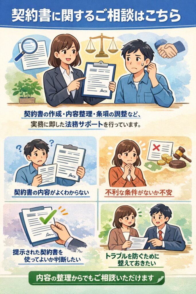 各種ビジネス契約書の作成についてご相談いただけます。